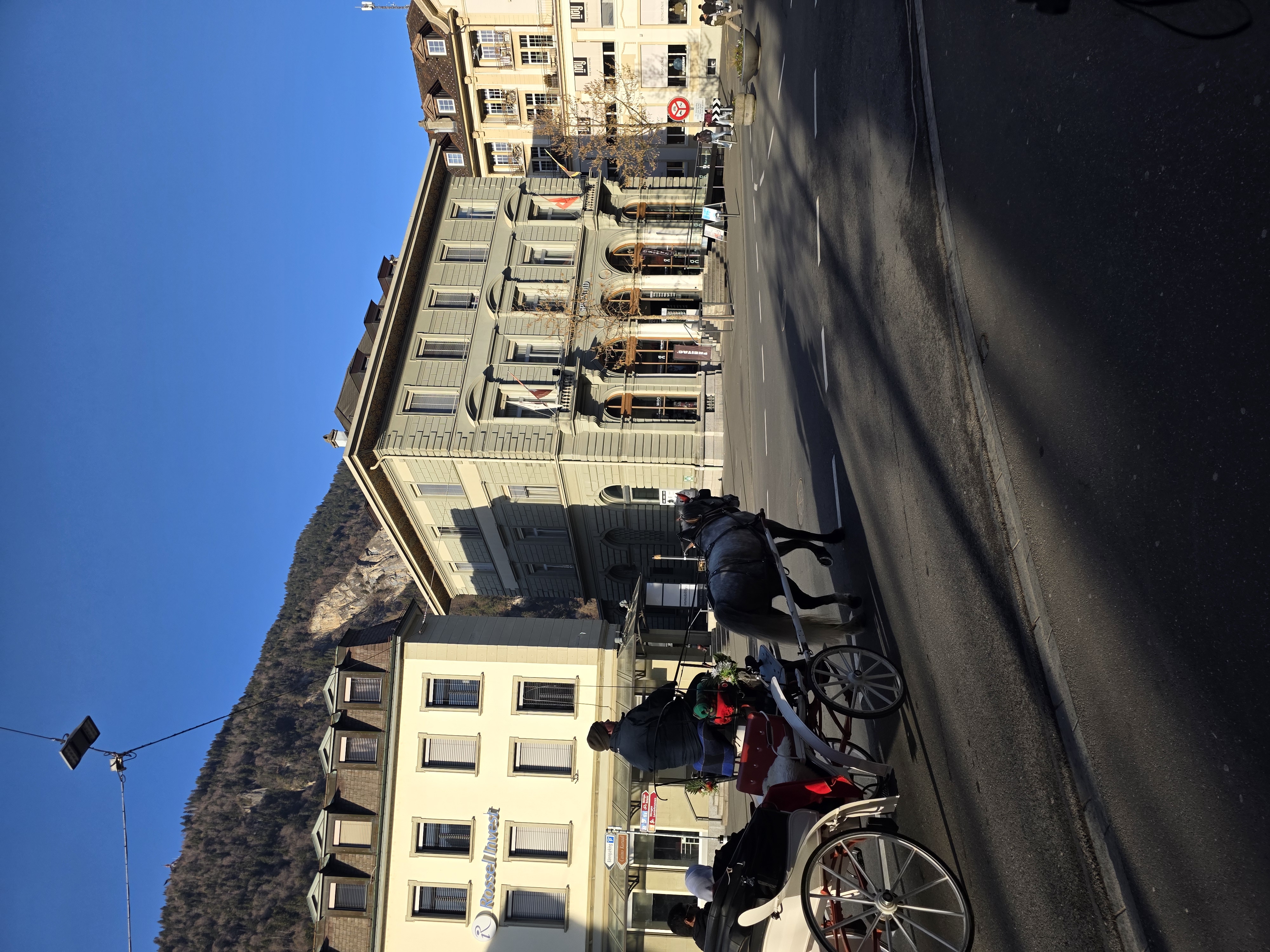 인터라켄 거리를 걷다 보면 여행 분위기를 느끼게 해주는 기념품 가게들도 쉽게 볼 수 있습니다. 스위스를 상징하는 작은 소품들과 알프스 풍경이 담긴 기념품들이 진열되어 있어 잠시 발걸음을 멈추게 만듭니다. 거리 한쪽에서는 관광객을 태운 마차가 천천히 지나가며 마치 유럽 여행 영화 속 장면 같은 풍경을 만들어 주기도 했습니다.